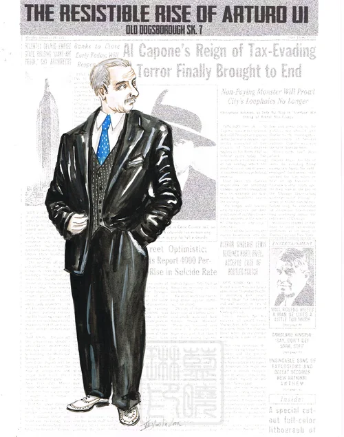 The ideas of costume design for ‘The Resistible Rise of Arturo Ui ‘is depending on the historic background of the script and material creative. The Resistible Rise of Arturo Ui is a 1941 play by the German playwright Bertolt Brecht. It chronicles the rise of Arturo Ui, a fictional 1930s Chicago mobster and his attempts to control the cauliflower racket by ruthlessly disposing of the opposition.